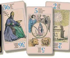 de Mage edmond (1829-1881) ; ces cartes sont un ensemble de symboles destinés à la divination qui mélangent les lames du tarot et du premier jeu